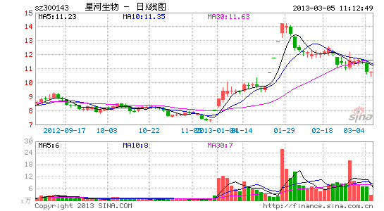 据星河生物年报披露,2012年公司实现净利润649.43万元,同比大降88.96%。不过,公司同时预计,2013年一季度,公司业绩将再次出现亏损,净亏损额度为300万元至500万元。