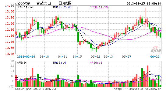 6月14日,上证指数略微高开,但古越龙山以下跌2.95%的12.50元大幅低开,并在9点30分至9点45分的时间段内没有太多波动,成交量亦不大。