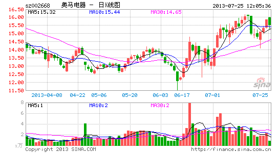 二级市场上,截至中午收盘,奥马电器报15.50元,下跌2.27%。