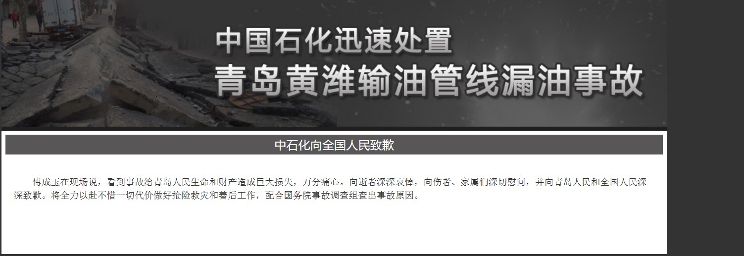 傅成玉在现场说,看到事故给青岛人民生命和财产造成巨大损失,万分痛心。向逝者深深哀悼,向伤者、家属们深切慰问,并向青岛人民和全国人民深深致歉。将全力以赴不惜一切代价做好抢险救灾和善后工作,配合国务院事故调查组查出事故原因。