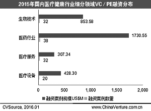 “吃药、看戏”被戏称为并购重组市场的两大方向,两者分别对应医疗健康行业和TMT行业。据私募通数据,以被并购方计算,从并购案例数来看,2015年国内并购市场排名前三的分别是IT、互联网、生物技术/医疗健康三个行业,分别产生了322、289和214起国内并购交易,占国内并购总数的13.4%、12%和8.9%。