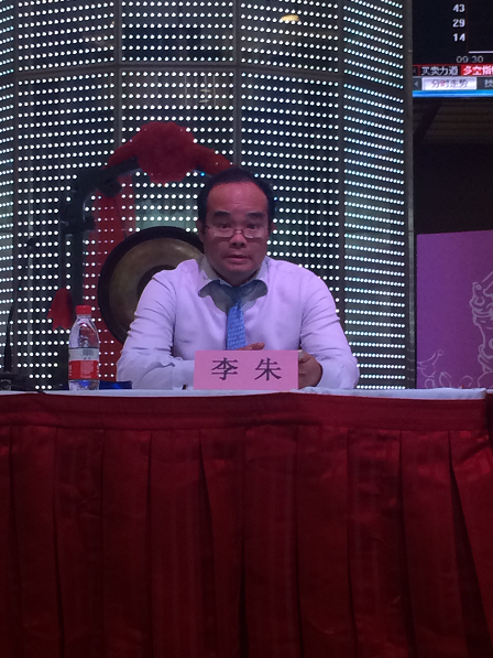 启行教育董事长李朱致欢迎辞、简述说明标的公司相关状况。本报记者 徐金忠摄