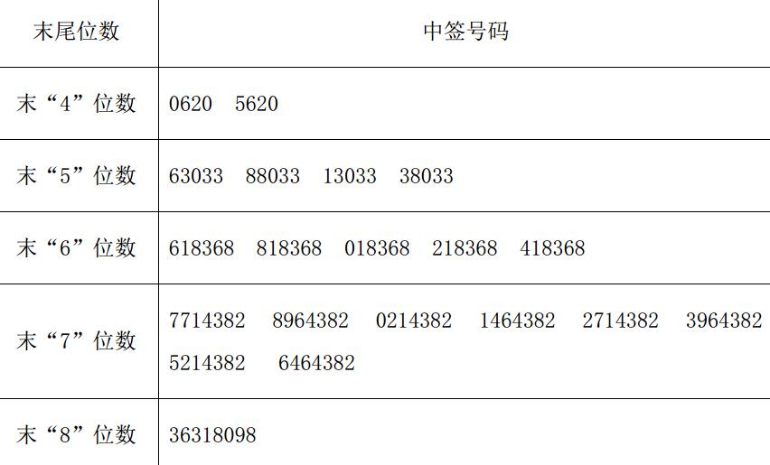 凡参与本次网上定价发行的投资者持有的申购配号尾数与上述号码相同的,则为中签号码。中签号码共有 45,000 个,每个中签号码只能认购 500 股厦门延江新材料股份有限公司 A 股股票。