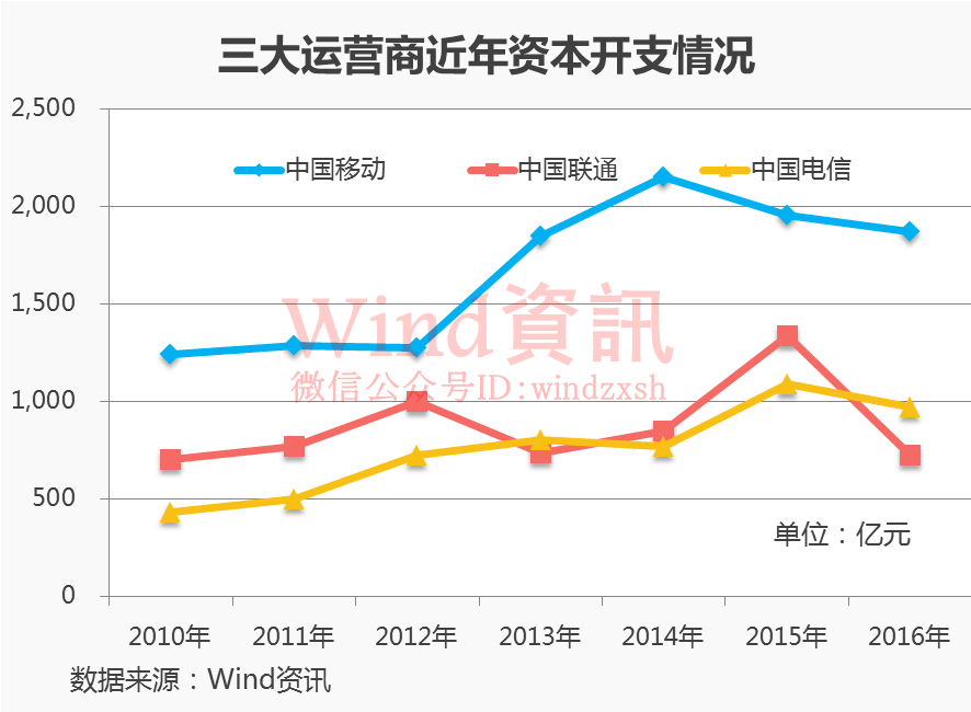 三大运营商资本开支数千亿