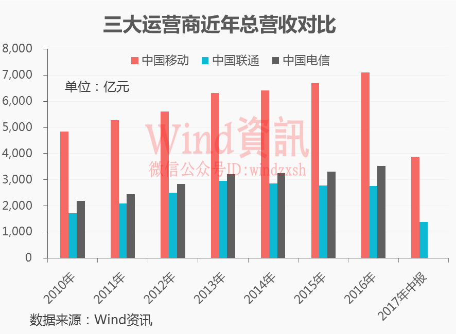 总营收:中国移动=中国联通+中国电信
