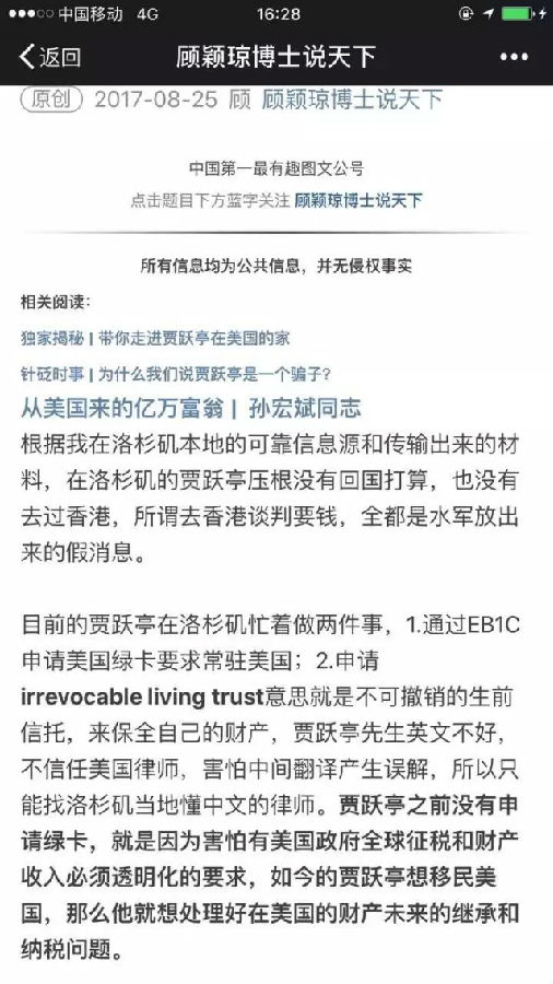 而在今年8月份,顾颖琼还爆料称,贾跃亭在洛杉矶忙着申请绿卡:通过EB1C申请美国绿卡要求常驻美国。