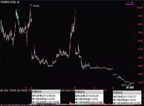 频繁高送转为中弘股份股价不足1元触发退市埋下了隐患。特别是2017年5月份,中弘股份股价才2块多,公司仍然强行高送转。