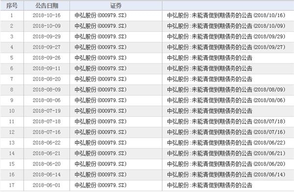 其实,中弘股份陷入困境已经不是一天两天了。关心中弘股份的除了投资者,还有为数众多的金融机构债权人。自今年6月份以来,中弘股份就开始陆续发布《未能清偿到期债务的公告》,至今已发布17份。