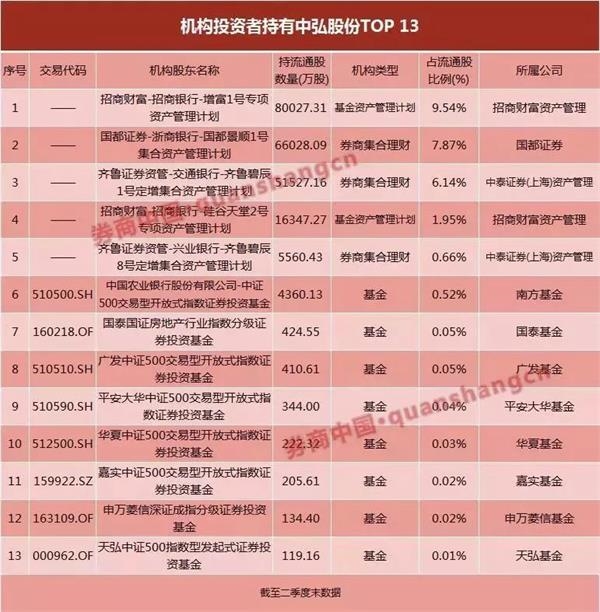 二季报数据显示,中弘股份也是机构投资者青睐标的,共有51只基金产品买入中弘股份,涉及28家基金公司和1家财富管理机构。此外,还有3只券商集合理财产品,涉及国都证券和中泰证券(上海)资产管理有限公司。