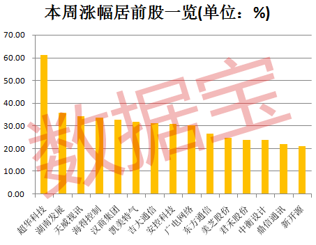 少数股票表现活跃,数据宝统计显示,剔除近一个月上市的次新股,本周累计涨幅在20%以上的个股有16只。