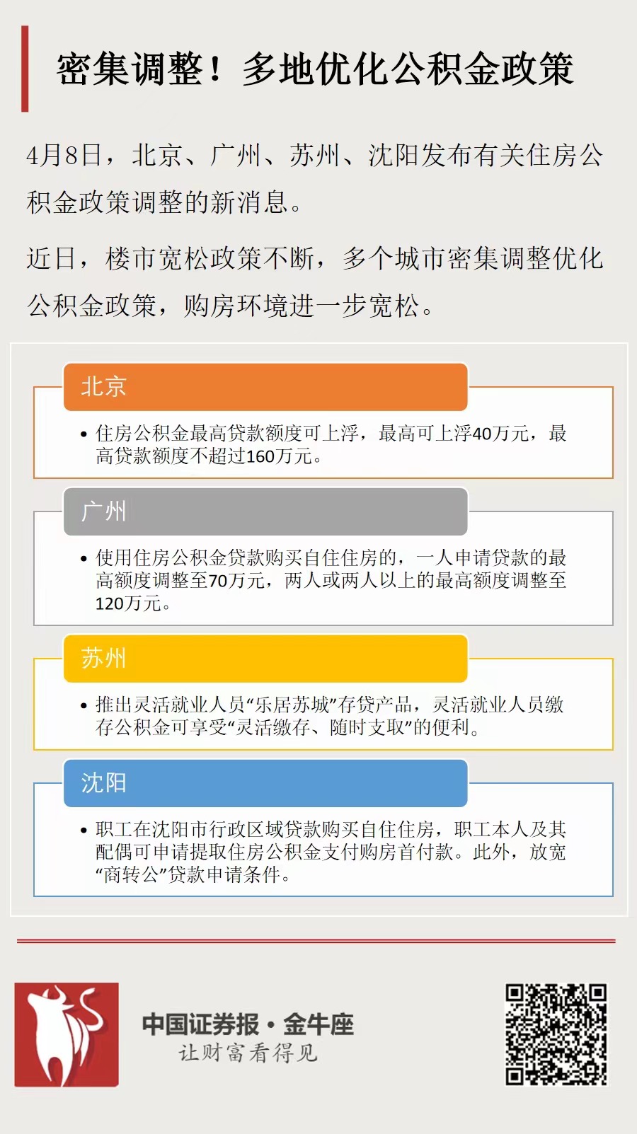 同日,广州住房公积金管理中心发布通知,使用住房公积金贷款购买自住住房的,一人申请贷款的最高额度调整至70万元,两人或两人以上购买同一套自住住房共同申请贷款的最高额度调整至120万元。此外,沈阳、苏州也相继发布有关住房公积金政策的新消息。