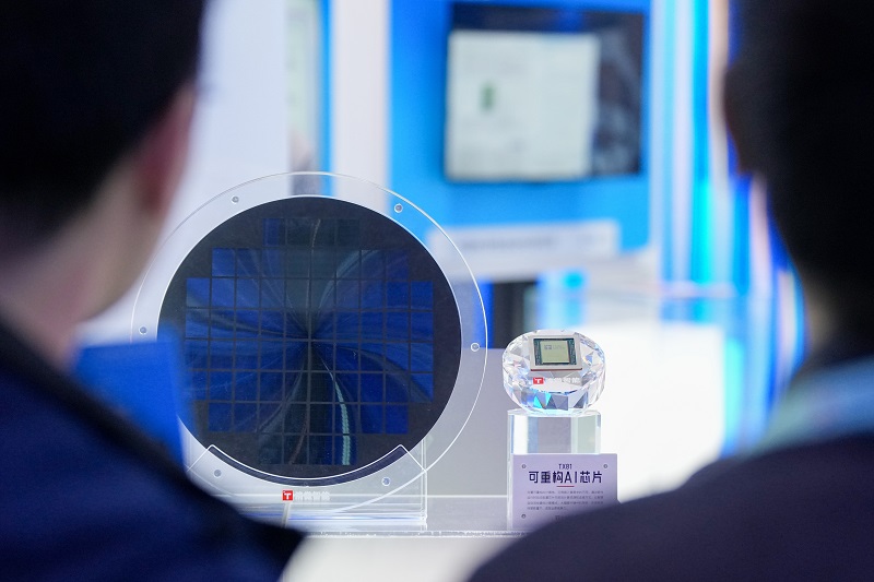 在中关村展示中心常设展上,清微智能公司展示可重构AI芯片。 新华社图片