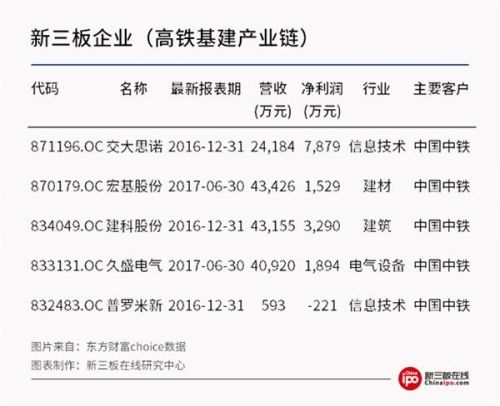 所以从行业角度,新三板企业只有通过切入中国中铁和中国铁建的产业链中才能获得相应的生存空间。相关公司如下表: