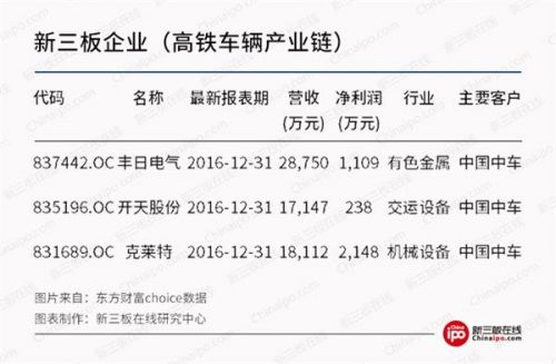 那么在新三板上又有哪些公司作为中国中车的供应商,成功切入了动车组的市场呢?