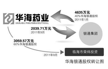 2011年1月,银通集团将其持有的华海银通40%股权转让给华海药业,作价4635万元。自此,华海银通成为华海药业全资子公司。