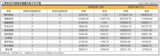 持股市值最大的公司则“花落”贵州茅台,三家机构——易方达资产管理(香港)有限公司、奥本海默基金、新加坡政府投资有限公司合计持有2370.3万股,持有市值高达111.8亿元,大幅领先第二名。白酒股成为今年A股市场最大的惊喜,上半年大盘调整剧烈,白酒板块单骑突袭,上演一九行情,特别是贵州茅台年初从300元出头起步,一路过关斩将,上半年的涨幅超过40%,而目前的股价已经突破500元的大关,也是迄今为止A股最“贵”个股。