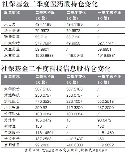其中,社保基金在二季度对信息技术和医药医疗保健行业个股增持显著。持有的医药医疗保健行业公司分别为众生药业(002317)、天士力(600535)、山大华特(000915)、双鹭药业(002038)、瑞康医药(002589)、汤臣倍健(300146)等。