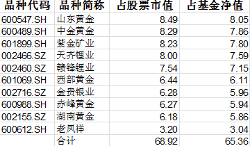 001302.OF前海开源金银珠宝混合A一季度的重仓持股为: