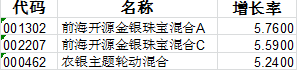 其中收益排名前三的基金为:
