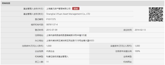 基金业协会备案信息也显示,上海集元资产在2015年7月9日完成私募证券投资基金管理人备案,现有员工11人,现任总经理李为民早前曾担任上海雍贯投资管理有限公司投资总监。目前,上海集元资产仅备案了集元-祥瑞1号一只基金,运作状态显示正在运作,产品最后更新日期是3月14日。