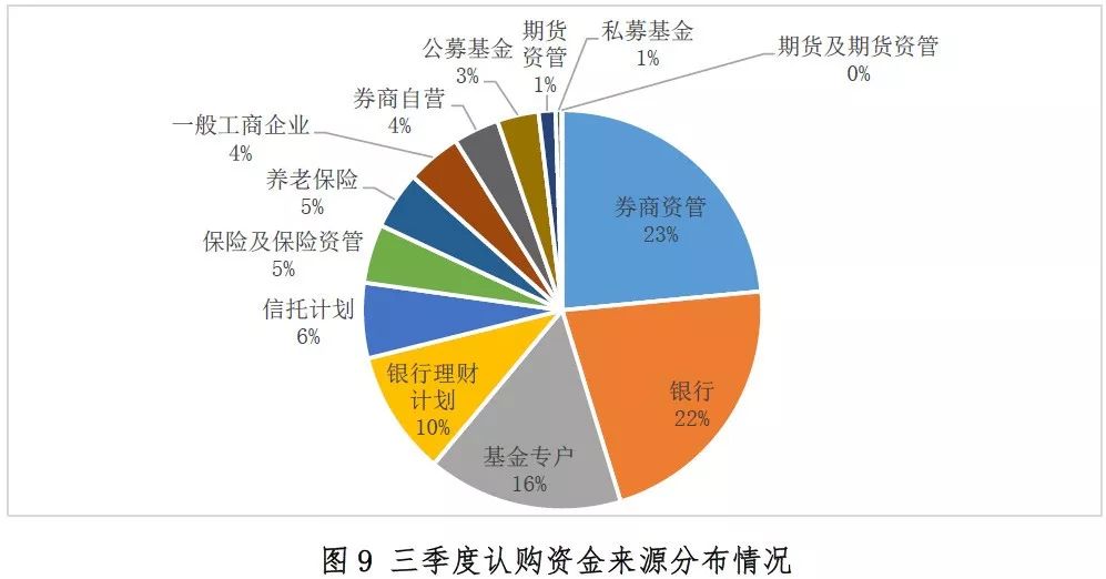 三季度新设产品认购资金主要来源于券商资管、银行及其理财产品、基金专户等,前述3类主体认购资金占比均超过15%,合计占比约71.13%。