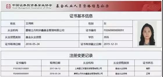 去年年中,基金业协会更新的基金从业人员资格信息公示,王鸿嫔的名字出现在大摩华鑫基金员工名单之列,多名业内人士透露,王鸿嫔或将出任大摩华鑫总经理一职。这一公募著名前女总经理的人事变动,更被业内人士点评为从“小摩到大摩”之举。