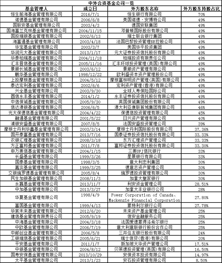 2018年4月,证监会也在就《外商投资证券公司管理办法》答记者问时,对基金业对外开放安排何时落地做出回答,证监会称,《证券投资基金管理公司管理办法》规定,中外合资基金管理公司外资持股比例或者拥有权益的比例,累计(包括直接持有和间接持有)不得超过我国证券业对外开放所做的承诺。基金管理公司对境外投资者进一步开放,允许外资持股比例达到51%,不涉及对现有规则的修改。符合条件的境外投资者已可根据法律法规、证监会有关规定和相关服务指南的要求,依法提交变更公司实际控制人或新设合资基金管理公司的申请材料。