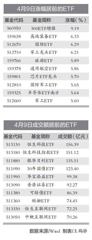 4月9日,主要宽基指数ETF成交持续活跃,科创50ETF率先放量。港股主题ETF方面,恒生科技指数ETF放量尤为明显。
