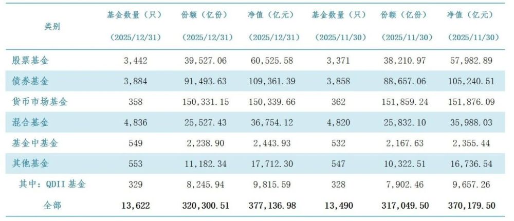 中国基金业协会最新发布的数据显示,截至2025年12月底,我国境内公募基金资产净值合计37.71万亿元。