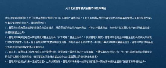 又一会儿业内传说,普思投资前几天对外澄清,普思投资的资金都是思聪哥哥自己的钱,并没有打算对外募资,所以主动放弃管理人备案资格。