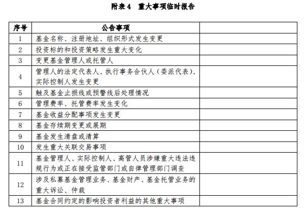 和征求意见稿不同,正式稿中协会特别制定了私募信披的重大事项临时报告要求,具体包括哪些事项,小伙伴们可以看下表。注意重大事项的披露也很重要。