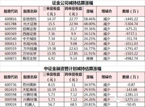 例如,2015年三季报显示证金公司新进安信信托,增持5106.8万股,位列第二大流通股东,2015年报显示证金公司仍为第二大流通股东,但减持1445.22万股,减持比例28.30%。假设证金公司以安信信托2015年9月30日收盘价14.37元买入,以2015年12月31日收盘价22.77元卖出,证金公司获利58.46%。