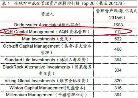 截止到2015年6月,AQR名列全球对冲基金管理资产规模排行榜第二, 712亿的资产规模与2004年度悉尼市的GDP相当。截止到2016年12月,短短1年半的时间,公司管理资产又增长了1000多亿,已达到1752 亿美元。