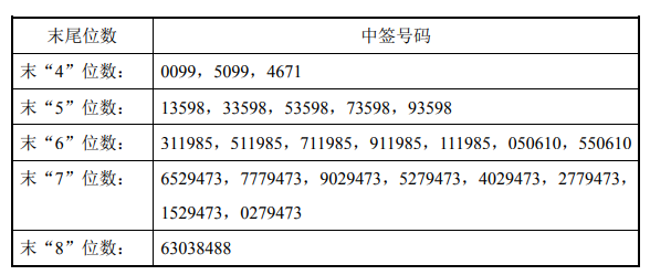 凡参与网上发行申购密尔克卫A股股票的投资者持有的申购配号尾数与上述号码相同的,则为中签号码。中签号码共有34308个,每个中签号码只能认购1000股密尔克卫A股股票。