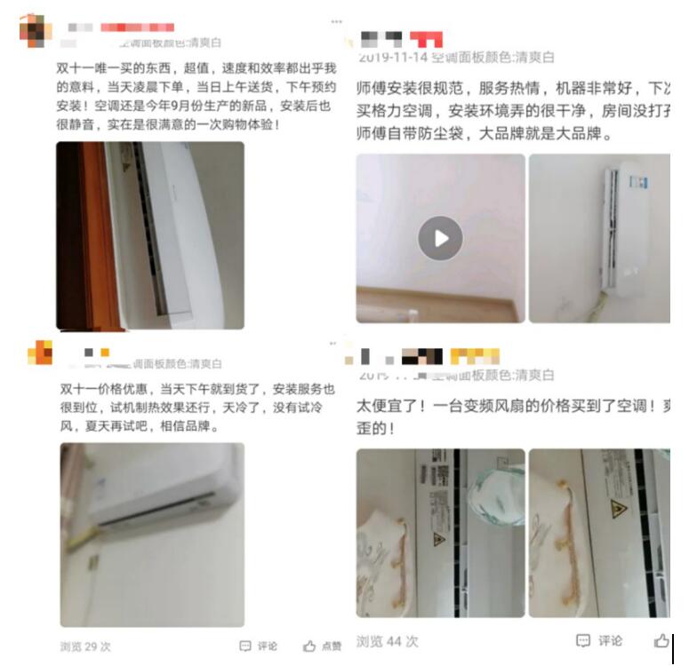 再来看看那些赶上格力“11.11”幸运儿的评价。他们不仅对“俊越”产品好评如潮,还对格力的物流和安装服务赞赏有加。