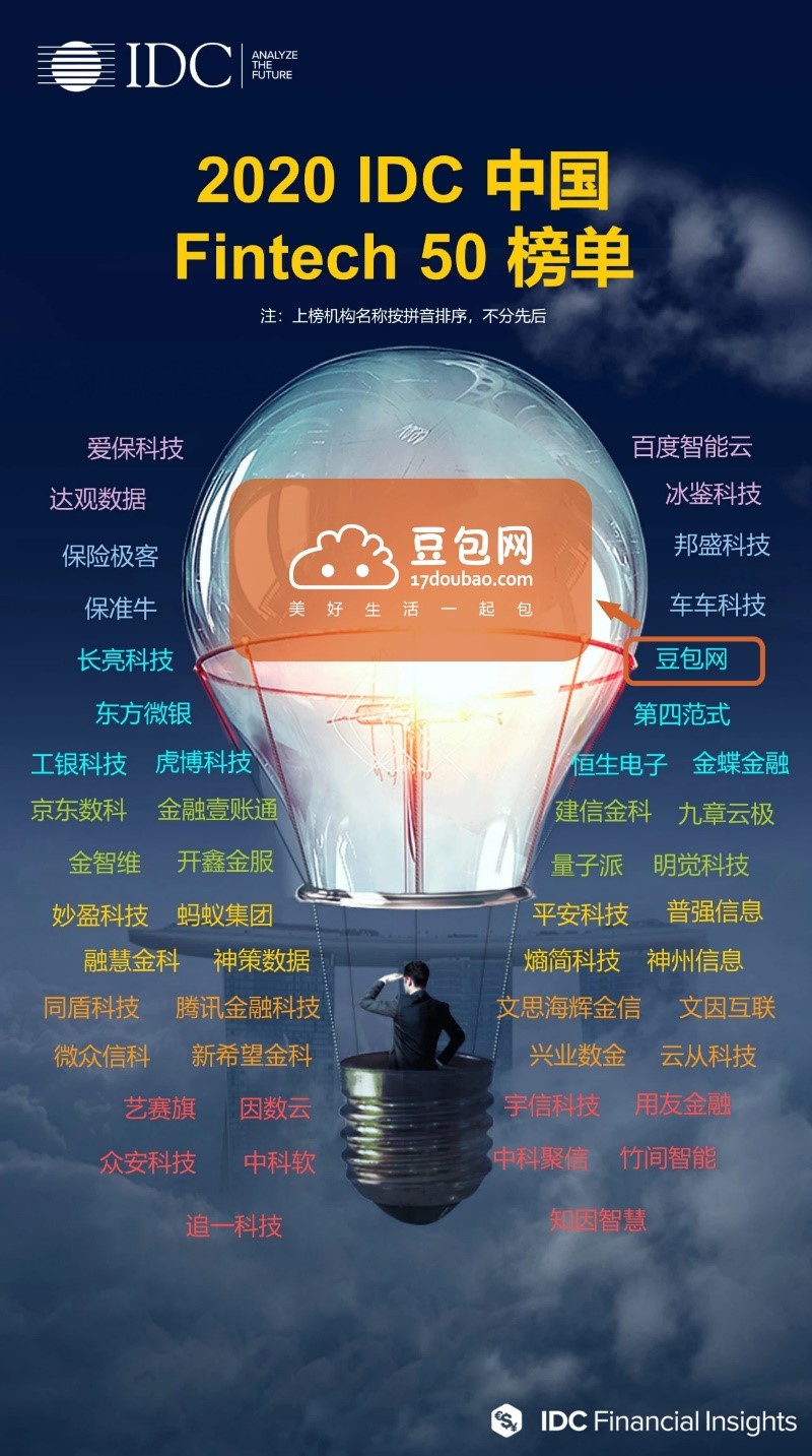 今年是IDC主办的第七届“中国金融行业数字化论坛及创新颁奖典礼”活动,2020年IDC Fintech 50榜单评选条件包含市场规模、业务模式创新、业务规模、资本实力、生态能力。2020年以来,豆包网由专注科技创新迈向技术与业务双轴驱动开放,形成了丰富的产品条线,涵盖数字中介解决方案、数字保司解决方案、数据基础服务和企业私域流量运营解决方案,与保险机构建立多层次全方位的连接,推进其核心系统的升级和创新业务的实现。