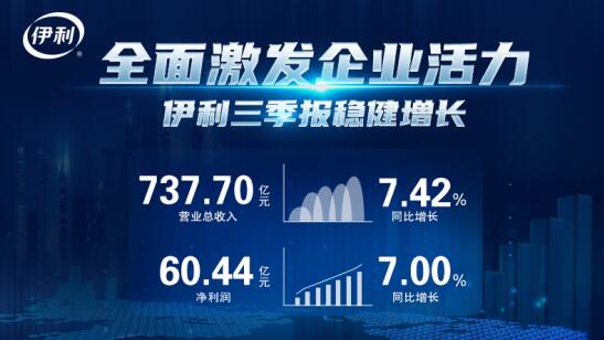 作为亚洲最大乳企,伊利牢记产业发展使命,业绩再创新高,成为中国乳业生命力的真实写照。2020年前三季度,伊利实现营业总收入737.70亿元,增长7.42%,净利润60.44亿元,增长7.00%,逆势实现业绩的稳健增长,各项核心指标继续蝉联亚洲乳业第一。