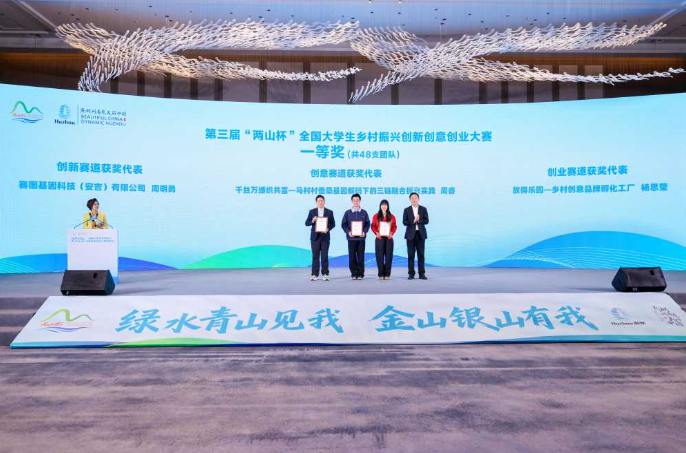 在大赛主题曲《时代青年 筑梦乡村》的旋律中,2025年第三届“两山杯”全国大学生乡村振兴创新创意创业大赛圆满落幕。