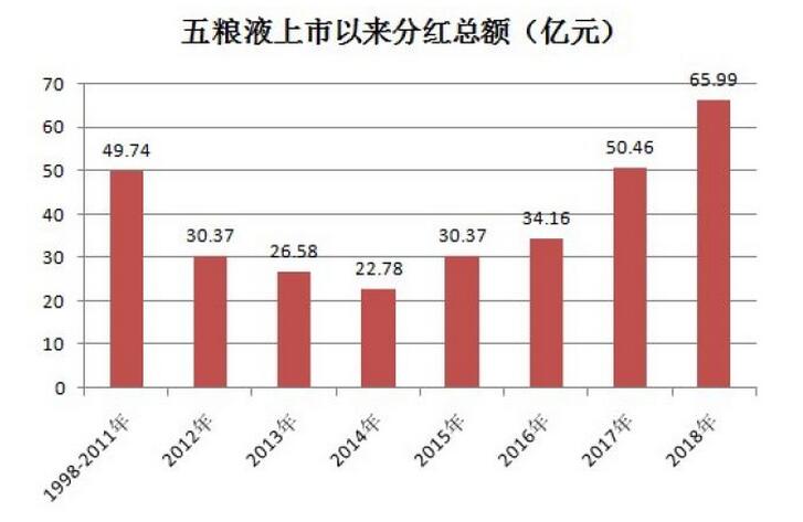 资料显示,五粮液自上市以来,已累计实施7次送红股,16次现金分红,现金分红金额合计244.44亿元。如算上2018年拟分红额,累计分红将高达310亿元,是募集资金总额的8.14倍。