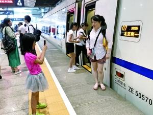 昨晨7点20分,北京晨报记者抵达北京南站,D6655次已停靠在站台准备迎接旅客。在“热烈祝贺北京至雄安新区动车组列车首发”横幅下,旅客们争相合影留念(如图)。北京晨报记者采访中发现,首发列车中以年轻旅客居多,另外还有不少旅客是专门带着孩子准备到雄安新区转转。外观上看,这趟列车和既有高铁列车并无区别,车内座椅为咖色设计,设有餐车。