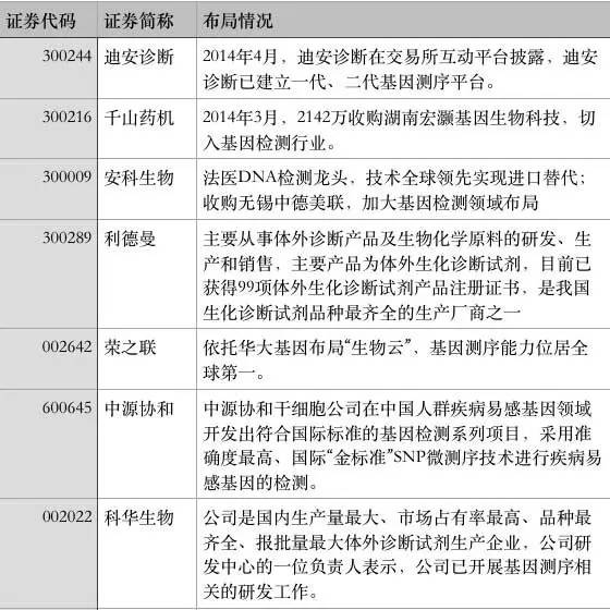 据深圳商报7月14日消息,华大基因是国内基因测序的行业龙头,布局了基因测序全产业链,包括上游的测序仪及试剂、中下游的基因测序服务提供,并在无创产检、PGS/PGD、肿瘤诊断及治疗、伴随诊断等方面具备领先优势。