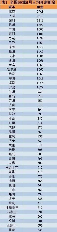 北京人均住房租金最高