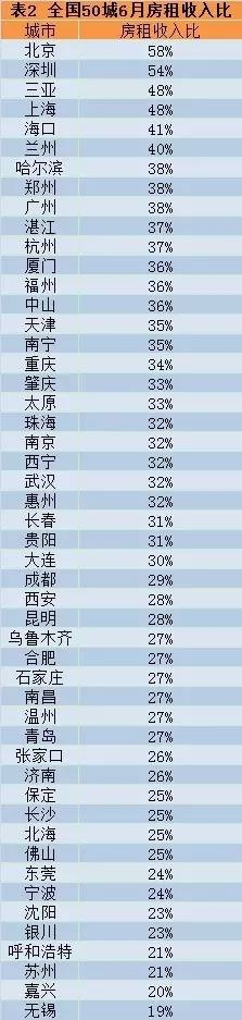 这4 大城市房租收入比高于45%
