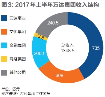 但是,万达目前营收主力还是地产。2017年上半年,万达地产业务收入568.3亿元,在万达集团收入中占比高达42.1%。其转型主力万达文化、金融、网络业务收入仍无力与地产业务匹敌。