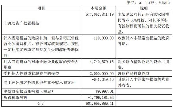 首先,我们从财报的角度来看看东湖高新,根据其一季报,火山君发现其一季度每股收益1.08元,一季度营业收入12.44亿元,同比增长17.41%;归属于上市公司股东的净利润6.87亿元,同比增长5861%,可见净利爆炸式增长;在扣除非经常性损益之后,其一季度净利518万元,同比下滑7.58%。意思就是,一季度6.87亿元的净利之中,有6.81亿元是非经常性损益,进一步可以发现,东湖高新转让武汉园博园置业60%股权就获得6.77亿元的投资收益,可见大部分业绩来自转让武汉园博园置业60%股权所致。