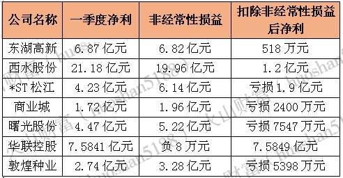 上述市盈率低于银行股的7只个股之中,仅有华联控股不是靠非经常性损益来充实净利,其余6家公司,非经常性损益提供了绝大部分净利。