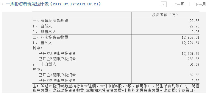 据中证登官网7月25日数据显示,上周新增投资者29.83万,较上周环比增长1.9%。