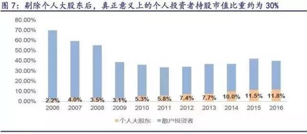 2、忽略个人大股东。从统计口径看,现有关于个人投资者持股市值的统计中还包含了个人大股东。
