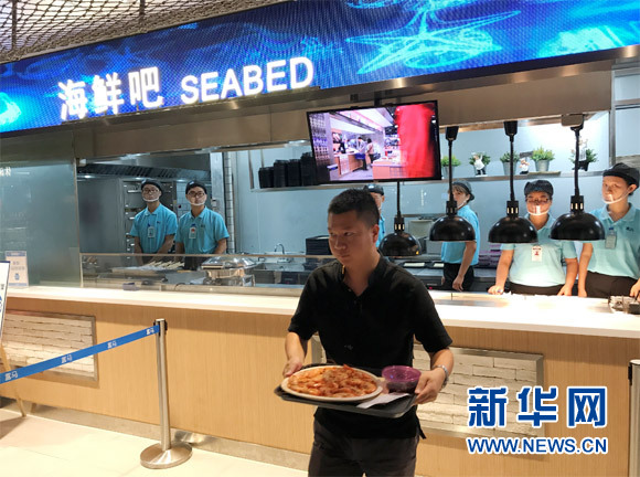 与其他商超不同的是,为方便消费者食用,同时也为了最大限度保留海鲜类产品的营养,消费者在店内选购商品后,可直接在“海鲜吧”进行现场烹饪、现做现吃。“生熟联动”“所见即所得”“一站式”,这些平常体验不到的服务让消费者印象深刻。