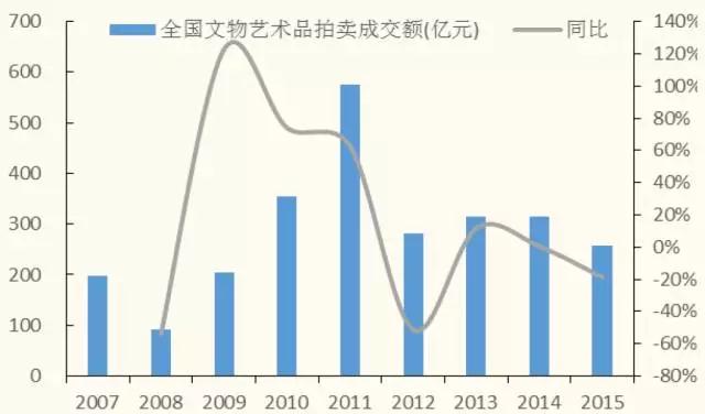 然而,随后行业经历了大规模暴跌,年成交额平均只有300亿左右。2015年,受经济持续低迷及证券市场震荡影响,部分高净值人群财富缩水。
